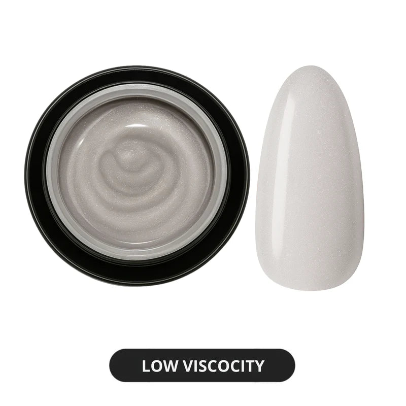 Our Builder Gel in a Pot - Shimmer Grey (Low Viscosity) is a versatile product primarily designed for sculpting, but it can also be used for leveling, repairing damaged nails, or as an Overlay (without the need for filing). It is the best product for encapsulation, offering superior results.